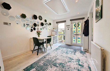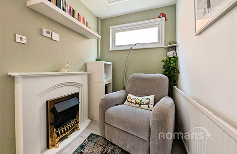 The ground floor features a bright and spacious reception room measuring approximately 4.51m x 4.50m (14'10" x 14'9"), providing ample space for both living and dining. A cosy snug area with a charming fireplace creates a warm and inviting atmosphere—perfect for relaxing evenings. To the rear, a well-appointed kitchen (2.69m x 1.63m / 8'10" x 5'4") offers practical workspace and direct access to the rear of the property.