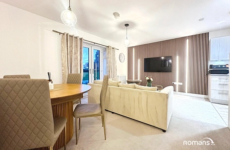 This immaculate two-bedroom flat is offered for sale within a modern, purpose-built development in the Augusta Park area of Andover, Hampshire. Designed for contemporary living, the property features a bright open-plan kitchen, dining and sitting area, with doors opening onto a private balcony, providing valuable outdoor space. The main bedroom includes an en-suite and built-in wardrobes, complemented by a further well-proportioned bedroom and an additional contemporary bathroom. The layout has been thoughtfully arranged to maximise space and natural light.