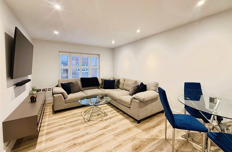 The first floor apartment is set at the rear of the building away from the hustle and bustle of the High Street. There's an entrance hall, leading through to the open plan kitchen/living room with high specification fixtures, fittings and integrated appliances which have been well cared for and are in "as new" condition. The master bedroom is incredibly generous in its size, with a gorgeous en suite shower room. In bedroom two, the current owner has fitted bespoke wardrobes making the most of the space, making it a perfect additional study or guest room. The bathroom is fully tiled with a heated towel rail and storage under the sink.