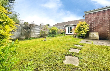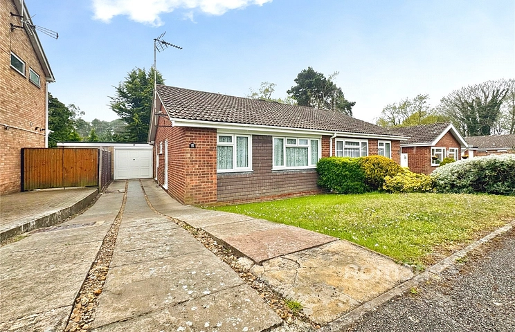 This two-bedroom semi-detached bungalow is for sale in the Owlsmoor area of Sandhurst, offering single-storey living with a large reception room, a kitchen, a bathroom, driveway parking and a private garden. The property is set within Claremont Wood and is offered with no onward chain.