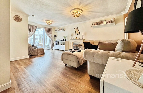 The spacious living area leads through to a heated conservatory, which can serve as a dining room, playroom or flexible additional living space. The neutral kitchen provides access outdoors as well. The main bedroom is a sizable double and includes built-in wardrobes, while the second bedroom is also a double. The bathroom features a double width shower.