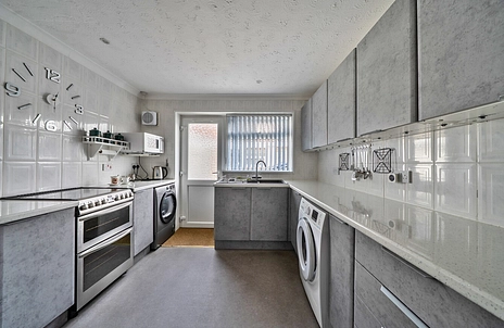 The main lounge is generously proportioned and has direct access to the garden, creating a pleasant space for everyday living. The fitted kitchen includes a door to the driveway at the side, providing convenient access for unloading. Bedroom one features an en-suite and built-in wardrobes, while bedroom two also benefits from built-in storage. There is a separate family bathroom.