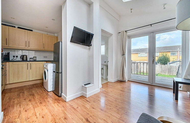 The property features a bright and airy living area, complemented by a modern extended kitchen/dining space ideal for entertaining or family life. A downstairs bathroom adds convenience, while upstairs you’ll find two well-proportioned bedrooms and a further ensuite bathroom to the master.