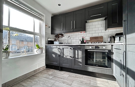 The refitted kitchen offers a range of integrated appliances including a fridge/ freezer, washing machine and oven and hob. The rear aspect reception room opens out onto the landscaped rear garden with artificial lawn and a raised patio area ideal for entertaining. To the first floor there are two double bedrooms and bathroom.