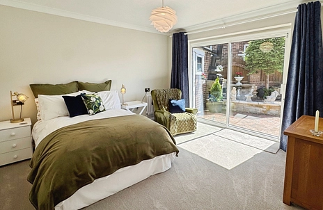 Outside to the rear is a lovely, enclosed courtyard style garden which faces south-westerly and has rear access into the garage and further side gated access. To the front is a large lawned garden, 2 separate driveways and oversize garage.