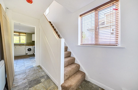 Upstairs, there are three well-proportioned bedrooms. The main bedroom and second double bedroom both benefit from built-in wardrobes, while the third single bedroom, also with storage, offers flexibility as a child’s room, home office, or guest space. A family bathroom with a separate toilet completes the layout.