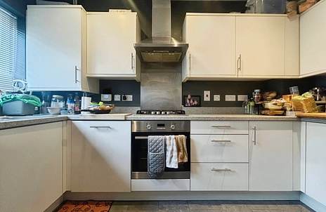 The ground floor features a welcoming entrance hall with a convenient downstairs W.C., leading through to a bright and spacious 15"4. The separate 12"5 kitchen is well laid out with generous worktop and storage space, offering practicality for everyday living.