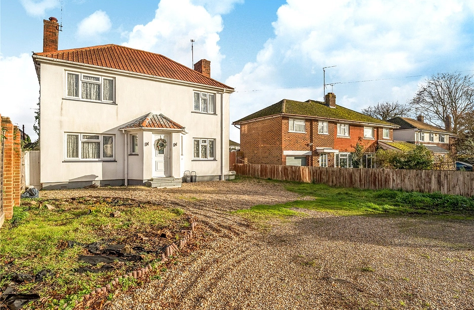 Nestled along the sought-after Burghfield Road, this well-proportioned three-bedroom detached family home offers superb potential for improvement and development (subject to planning permission). THERE ARE PLANS IN THE BROCHURE FOR THE DEVELOPMENT OF FIVE HOMES ON THE LARGE SIZED PLOT.