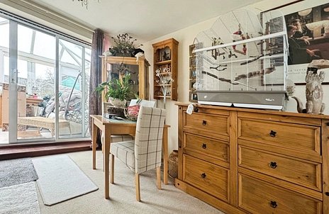 The accommodation comprises three good-sized bedrooms, offering flexibility for family life, guest space or home working. These are served by a well-appointed family bathroom. The ground floor living space is bright and welcoming, with a generous reception area that provides clearly defined zones for both relaxing and dining, creating a comfortable and versatile environment.