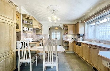 The property offers a well-appointed open-plan kitchen, flooded with natural light, and offers ample dining space. It is an ideal space for family meals or entertaining guests.