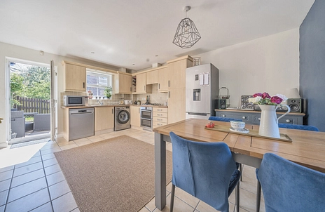 The heart of the home is a spacious kitchen/diner that provides a welcoming space for meal preparation and family dining. The layout is modern and practical, and a door leads directly out to the garden, allowing a wealth of natural light to flow through.