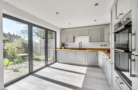 The ground floor features a generous 21'5" open-plan kitchen/diner, complete with bi-folding doors that open onto a private rear garden perfect for entertaining and family living. There is also a welcoming hallway and a well-proportioned 14'5" reception room.