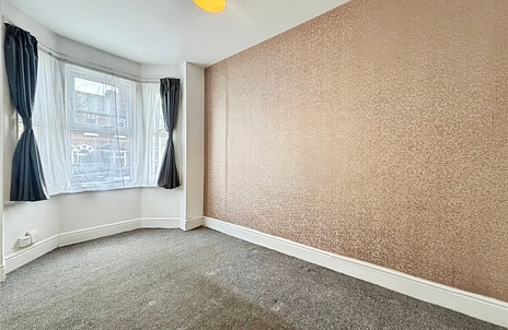The ground floor comprises an entrance hall leading into a spacious living/dining room and a bedroom or second reception room to the front with a bay window. To the rear is a fitted kitchen with good worktop and storage provision, leading through to a ground-floor bathroom fitted with a white suite.