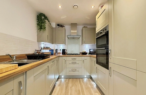 The property features a spacious living/dining room with doors opening onto a good-sized rear garden, perfect for relaxing or entertaining. The separate contemporary kitchen is fitted with integrated appliances and finished to a high standard, providing a practical and attractive cooking space.