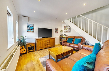 The ground floor features a generous 15’3” reception room, along with a recently refitted kitchen complete with integrated appliances and quartz worktops. The kitchen flows into a bright conservatory with French doors opening onto a decked area and a private rear garden with convenient side access.