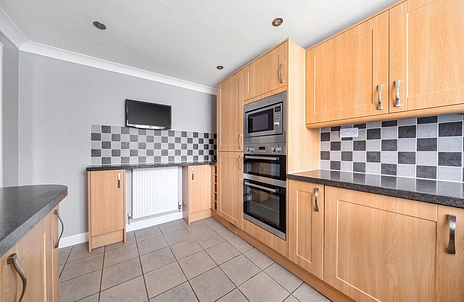 Upstairs the landing has ladder access to a boarded loft with lighting. The main bedroom is a double which has an airing cupboard complete with shelving and a recently re-fitted en-suite shower room with heated towel rail and built in vanity unit. The second bedroom is also a double, while the third is a large single that would also work well as a home office or nursery. The modern refitted family bathroom features a shower over bath and shower screen, built in vanity unit, mirrored bathroom cabinet, shaver point and a heated towel rail