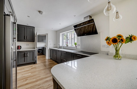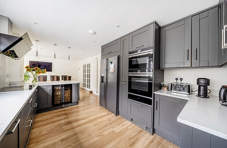 The property provides a well-balanced accommodation over two floors with a ground floor living space that consists of a generously proportioned living room, playroom and a luxury fitted kitchen/dining/family room, beautifully complemented by a stunning vaulted ceiling and large feature windows that provide views over and gives access to a south facing private rear garden, all of which are accessed off of a wide and welcoming hallway.