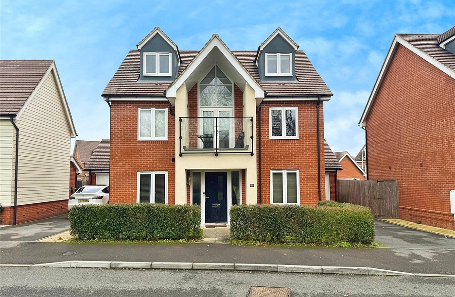 Romans are delighted to bring to the market this substantial 4 bedroom detached home set over 3 floors and situated on a quiet road in the popular Loddon Park Development. Benefits include 4 bedrooms, 3 bathrooms, 2 receptions, study, balcony, driveway, large garage, and the estate's country park which is only a stone’s throw from the property.