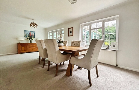 The ground floor offers generous and versatile living accommodation. A large, naturally light living/dining room provides an excellent space for both relaxing and entertaining, flowing seamlessly into a fully glazed conservatory that overlooks the garden. To the front of the property, a separate study offers the perfect space for home working. The spacious kitchen provides ample storage and worktop space and benefits from direct access to a separate utility room. From here, there is internal access to the integral double garage. Completing the ground floor is a convenient downstairs WC and useful under-stair storage.