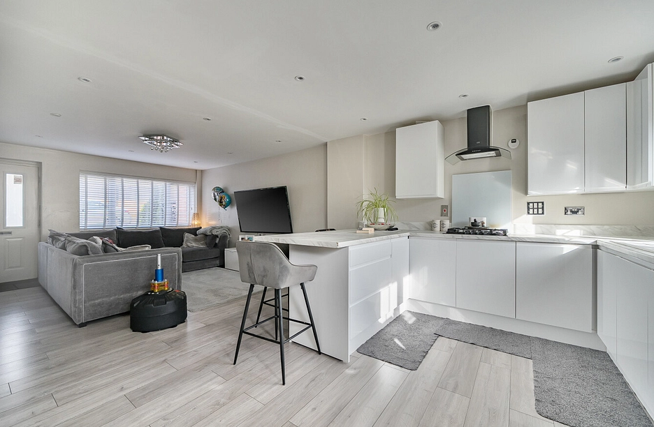 The property features a spacious kitchen/diner/living room on the lower ground floor, thoughtfully designed to create a stylish and sociable heart of the home. This expansive open-plan area is perfect for modern family living and entertaining, with ample space for dining, relaxing, and cooking in comfort.