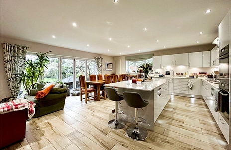 The property comes with a practical, open-plan kitchen complete with a kitchen island and ample storage. The kitchen also benefits from a dining space and bi-folding doors, allowing plenty of natural light to flood into the room. Just off the kitchen, there is a useful utility room that provides direct access to the single garage and garden.