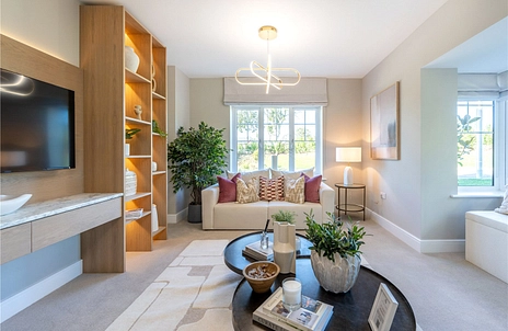 Plot 4 The Mercer is a highly flexible family home, with a bright, dual aspect living room, private study, and a large kitchen and separate dining room that both open out to the garden through French doors. Plot 4 also comes complete with a family room.