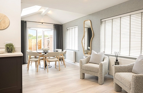 The extensive dual aspect sitting room is flooded with natural light creating an inviting space to relax and catch up with the family. The high specification kitchen with Bosch appliances is the perfect place to host friends and family. The flexible 'L' shaped open plan kitchen/dining/family room allows for conversations to flow and effortless flow from indoors out.