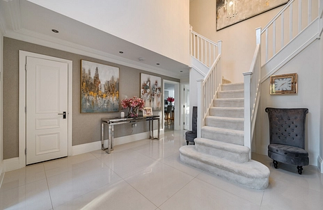 This exceptional six-bedroom detached residence is set within the highly desirable village of Up Nately, near Hook in Hampshire, and enjoys a wonderfully private setting behind electric gates. Positioned within beautifully maintained grounds, with a picturesque canal running through the land, the property offers a rare combination of tranquillity, privacy and immediate access to surrounding countryside and scenic walking routes.