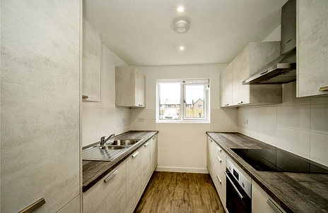 Open plan kitchen/dining/living room with double doors out to the garden area. Located on the first floor are two double bedrooms with built in wardrobes to the master and family bathroom.