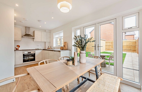Three bedroom home on the popular Bucklers Park development. All properties are brand new and come with luxury kitchen with appliances, all are fitted with stylish, German engineered Nobilia units and efficient and have integrated Bosch appliances, modern brand new bathrooms with stylish ceramic tiles by Porcelanosa. All properties will have Air Source Heat Pumps and EV Chargers, and the majority of houses also have solar panels.