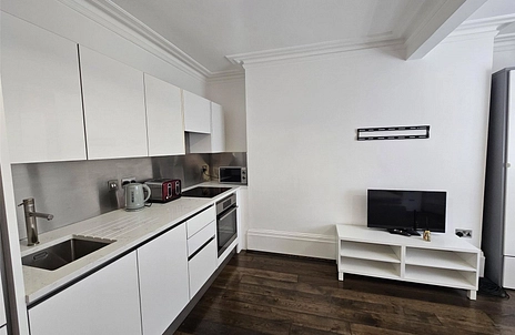 Very well presented basement studio apartment located close to the town. Stairs & lift from secure comminal hall to basement level. Entrance hall, shower room, studio room with bed and kitchen area with integrated appliances. Separate utility room. Furnished. Secure residents parking.